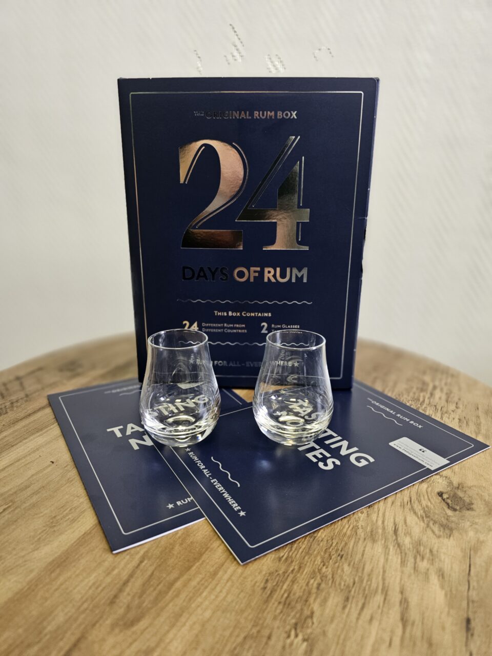 Krom 24 degustačních lahviček opět obdržíte i „tasting notes„. Útlou knížečku kam můžete psát své postřehy z jednotlivých rumů. Součástí balení je i degustační sklenička. Vše – 2 skleničky, 2 degustační poznámky, je 2x! Abyste si kalendář mohli lépe vychutnávat v páru. I když už je po adventu, kalendář si stále můžete koupit.
